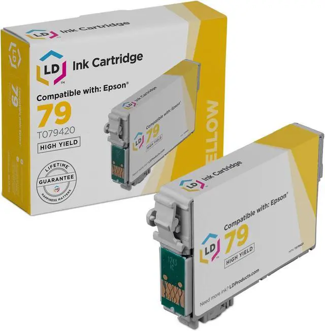 Save even more with our T079 remanufactured high yield ink cartridges. This item includes 1 T079420 Yellow ink cartridge. Why pay more for brand name Epson T0794 printer ink cartridges when our remanufactured printer supplies deliver excellent quality results for a fraction of the price? This combo set works with the following Epson Stylus 1400 and Artisan 1430 Printers. We are the exclusive reseller of LD Products brand of high quality printing supplies.