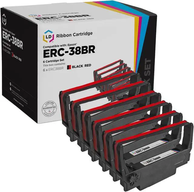Stop overpaying for Epson brand POS ribbons. Buy replacement compatibles! ERC-38BR Black/Red RibbonGet the same great print results, but for a lot less money with our compatible replacement for Epson ERC-38BR POS ribbons. They are manufactured under strict quality assurance standards! LD Products Cartridges are manufactured in an internationally certified ISO 9002 factory. For use in the following printers: Epson TM-U220, TM-300A, TM-U200B, TM-300B, TM-U220A, TM-300D, TM-U210AR, TM-U210A, TM-300C, TM-U200A, TM-U210D, TM-U220B, TM-U200D, TM-U200, TM-U325, TM-U280, TM-U300, TM-U220D, TM-U300B, TM-U230, TM-U375, TM-U300D, TM-U300A, TM-U210B, TM-U370, TM-U300C ERC -38, -34. We are the exclusive reseller of LD Products brand of high quality printing supplies.