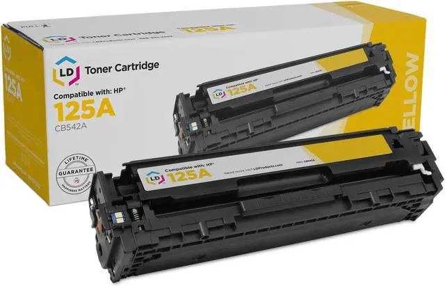 This is a remanufactured replacement cartridge for the Hewlett Packard CB542A (125A) yellow laser toner cartridge which is manufactured by LD Products and will perform with your HP printer. It replaces the original HP CB542A toner cartridge. LD Products remanufactured replacement CB542A laser toner cartridges are specially engineered to meet the highest standards of quality and reliability you can expect from LD Products. Our toners have exceptional yields that meet or exceed the (Original Equipment Manufacturer) page yield for the CB542A. High quality LD compatible CB542A toner cartridges are an economical and sensible alternative to expensive CB542A (HP 125A) Hewlett Packard laser toner cartridges and supplies.