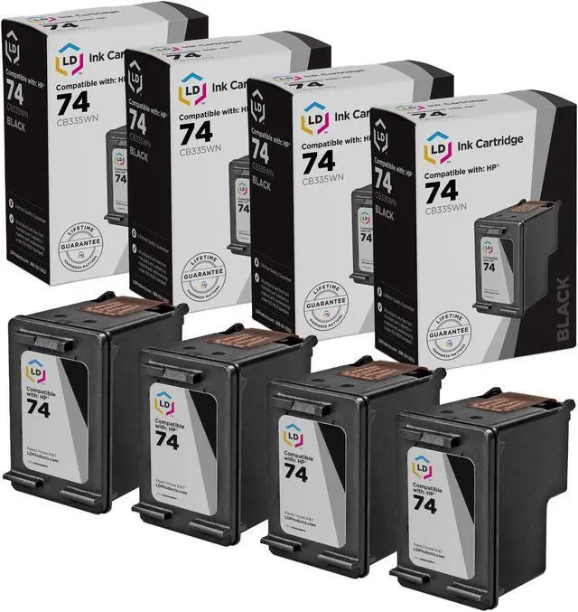 Save even more with our set of 4 HP 74 CB335WN Black inkjet cartridges. These LD Products remanufactured ink cartridges have been thoroughly cleaned along with the printhead nozzles. Following the cleaning process, we refilled the cartridge with a professionally manufactured pigment-based ink formula for archival print life and color stability. This ink formula is specially designed to produce vibrant and long-lasting prints comparable to HP. After carefully inspecting the shell for leakage and monitoring the electrical circuitry for efficiency, we put the cartridge through a final print test to be certain it is ready to perform.