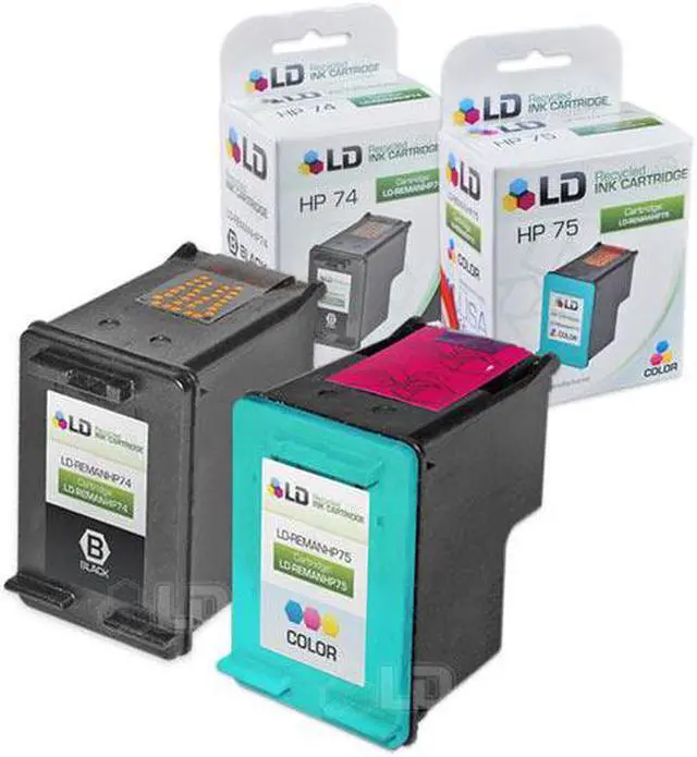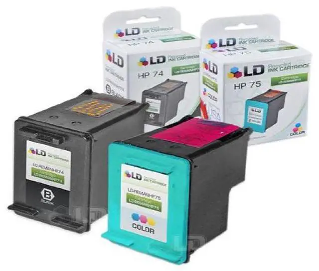 Save even more with our 2 pack of professionally remanufactured HP 74 & 75 inkjet cartridges. This set includes 1 HP CB335WN 74 black cartridge, and 1 HP CB337WN 75 color cartridge. These LD remanufactured ink cartridges have been thoroughly cleaned along with the printhead nozzles. Following the cleaning process, we refilled the cartridge with a professionally manufactured pigment-based ink formula for archival print life and color stability. This ink formula is specially designed to produce vibrant and long-lasting prints comparable to HP. After carefully inspecting the shell for leakage and monitoring the electrical circuitry for efficiency, we put the cartridge through a final print test to be certain it is worth of our 100% money-back guarantee.