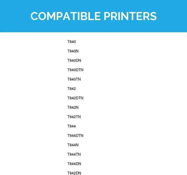 Lexmark printers: T Series T640, T Series T644n, Optra Series T644dtn, Optra Series T644, Optra Series T642, T Series T640n, Optra Series T644tn, Optra Series T642tn, Optra Series T642n, Optra Series T642dtn, Optra Series T640tn, T Series T640dtn, T Series T640dn. We are the exclusive reseller of LD Products brand of high quality printing supplies.