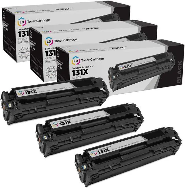 Save and print even more when you shop with LD Products! This offer includes (3) CF210X / 131X high yield black toner cartridges; they replace the CF210A / HP 131A standard yield black toner series. Why pay more for expensive brand name Hewlett Packard toner? This toner cartridge set is compatible with HP LaserJet 200 Color M251n, LaserJet 200 Color M276n, LaserJet 200 M251nw, LaserJet 200 M276nw and LaserJet Pro 200 Color M251n, LaserJet Pro 200 Color M276n, LaserJet Pro 200 M251nw, LaserJet Pro 200 M276nw printers. Please note, retail packaging may vary and these cartridges will only work with printers purchased within the United States and Canada.