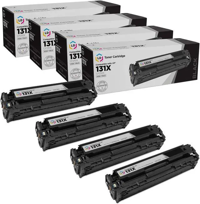 Save and print even more when you shop with LD Products! This offer includes (4) CF210X / 131X high yield black toner cartridges; they replace the CF210A / HP 131A standard yield black toner series. Why pay more for expensive brand name Hewlett Packard toner? This toner cartridge set is compatible with HP LaserJet 200 Color M251n, LaserJet 200 Color M276n, LaserJet 200 M251nw, LaserJet 200 M276nw and LaserJet Pro 200 Color M251n, LaserJet Pro 200 Color M276n, LaserJet Pro 200 M251nw, LaserJet Pro 200 M276nw printers. Please note, retail packaging may vary and these cartridges will only work with printers purchased within the United States and Canada.