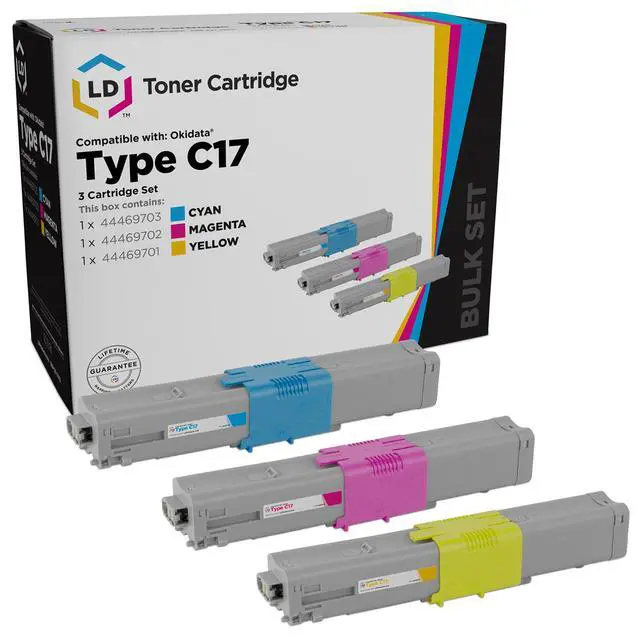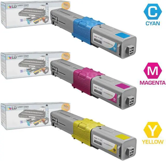 Save even more with our 3 pack compatible Okidata laser toner cartridges. This set of 3 includes 1 cyan 44469703, 1 magenta 44469702, and 1 yellow 44469701 laser toner cartridge. Why pay twice as much for brand name OEM Okidata printer laser cartridges when our compatible printer supplies deliver excellent quality results for a fraction of the price? Our compatible brand replacement laser toner cartridges for your Okidata printer are backed by a full 2 year 100% satisfaction guarantee. So stock up now and save even more! This combo set works with the following Okidata printers: C330dn, C530dn, MC361, MC561, MC890, MC950, and MC950 MFP. We are the exclusive reseller of LD Products brand of high quality printing supplies on Newegg.