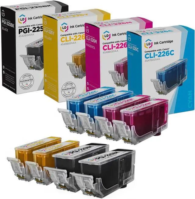The following Compatible Cartridges are Included: 2 PGI-225BK Pigment Black | 2 CLI-226C Cyan | 2 CLI-226M Magenta | 2 CLI-226Y Yellow