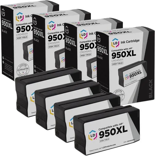 Save and print even more when you shop LD Products! This product includes an LD Products Compatible Ink Cartridge Replacement for HP 950XL CN045AN High Yield (Black, 4-Pack) For use in and works with HP OfficeJet Pro 251dw, 276dw, 8100, 8600 Series. Why pay more for a branded name when our compatible printer supplies deliver excellent quality results for a fraction of the price? Our printer supplies are good for home, office or when you're running a business. Our products are put through a rigorous testing process where they are monitored for quality and reliability.