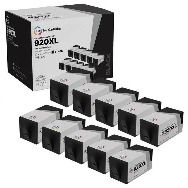 Save even more with our 10 pack of professionally remanufactured replacement for Hewlett Packard (HP) CD975AN inkjet cartridges. This set includes 10 remanufactured replacements for Hewlett Packard (HP) CD975AN Black inkjet cartridges. Why pay more for brand name Hewlett Packard (HP) ink cartridges when our remanufactured printer supplies deliver excellent quality results for a fraction of the price? These LD ink cartridges have been thoroughly cleaned along with the print head nozzles, and were filled with the same ink formula. The internal back pressure was insured, the shell was inspected for any possible leakage and the electrical circuitry was tested before finally undergoing an actual print test.