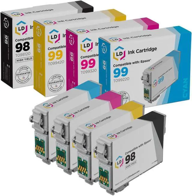 Replacements Included: 4 Set - Black, Cyan, Magenta, Yellow | Epson 98 & 99 High Yield.