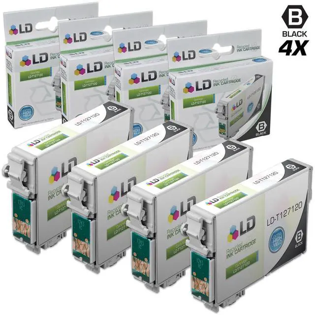 Save even more with our 4 extra high capacity ink cartridge set for the Epson T127 series. This set includes 4 Black T127120 (T1271) inkjet cartridges. Why pay twice as much for brand name OEM Epson T127 black printer ink cartridges when our remanufactured printer supplies deliver excellent quality results for a fraction of the price? Our remanufactured brand replacement inkjet cartridges for Epson printers are backed by a full 2 year 100% satisfaction guarantee. So Stock up now and save even more! For use in the following printers: Epson Stylus NX530, NX625, WORKFORCE 3520, 3530, 3540, 7010, 7510, 7520, 60, 545, 630, 633, 635, 645, 840 & 845. We are the exclusive reseller of LD Products brand of high quality printing supplies on Newegg.