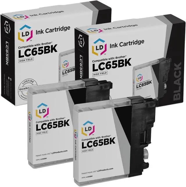 Save even more with our set of 2 compatible high yield laser ink cartridges. This set includes 2 LC65BK High Yield Black ink cartridges. Why pay more for brand name Brother LC65 printer ink cartridges? This combo set works with the following printers: MFC 5890CN, 5895CW, 6490CW, and 6890CDW. We are the exclusive reseller of LD Products brand of high quality printing supplies.