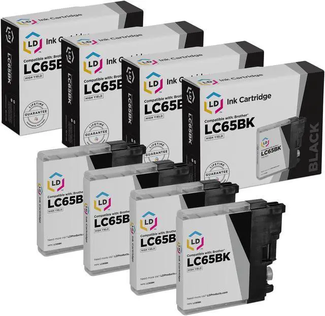 Save and print even more when you shop with LD Products! This offer includes 4 compatible replacements for Brother LC65 black / LC65BK black ink cartridges. Why pay more for expensive brand name Brother LC65 ink? Compatible with MFC-5890CN, MFC-5895cw, MFC-6490CW, and MFC-6890CDW inkjet printers. Please note, retail packaging may vary, and these cartridges will only work with printers purchased within the United States and Canada. The use of replacement ink and toner cartridges and supplies does not void your printer's warranty. Brother is a registered trademark of Brother Industries, Ltd.