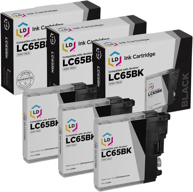 Save even more with our set of 3 compatible high yield laser ink cartridges. This set includes 3 LC65BK High Yield Black ink cartridges. Why pay more for brand name Brother LC65 printer ink cartridges? This combo set works with the following printers: MFC 5890CN, 5895CW, 6490CW, and 6890CDW. We are the exclusive reseller of LD Products brand of high quality printing supplies.