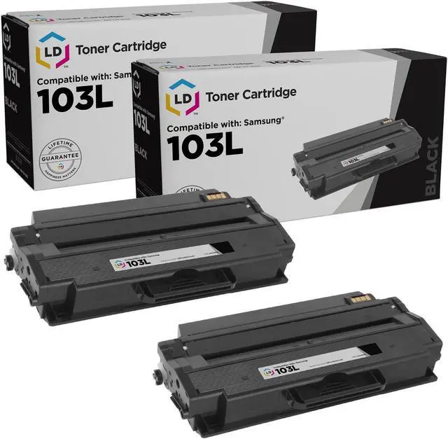 Save even more with our set of 2 Compatible high yield laser toner cartridges. This set includes 2 MLT-D103L high yield black laser toner cartridges. Why pay more for brand name Samsung MLT-D103L printer toner cartridges? For use in the following