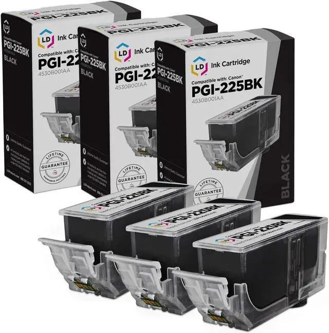Save even more with our compatible inkjet cartridges. This set includes 3 PGI225B (4530B001AA) Pigment Black inkjet cartridges. Why pay more for brand name PGI-225BK printer ink cartridges? This combo set works with the following