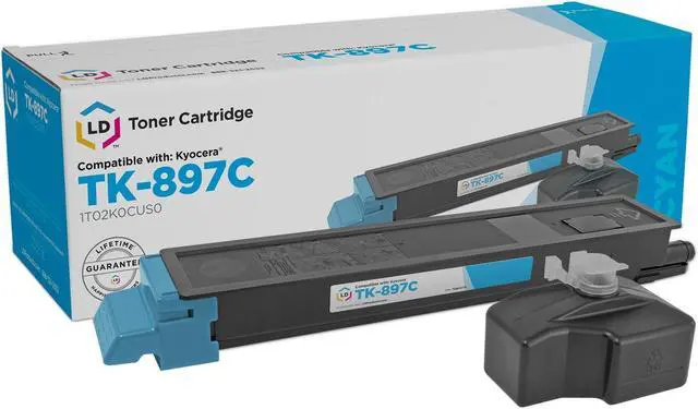 Save even more with our compatible laser toner cartridge. This item includes 1 TK-897C cyan laser toner cartridge. Why pay more for brand name Kyocera-Mita TK-597 cartridge? This item works in the following Kyocera-Mita TASKalfa and