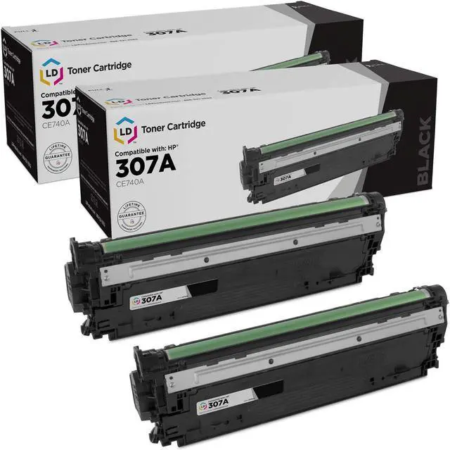 Save even more with our set of 2 remanufactured laser toner cartridges. This set includes 2 CE740A black laser toner cartridges. Why pay more for brand name HP 307A laser toner cartridge when our remanufactured printer supplies deliver excellent quality results for a fraction of the price? Our remanufactured ink cartridges are not remanufactured by HP. This set works in the following Hewlett Packard