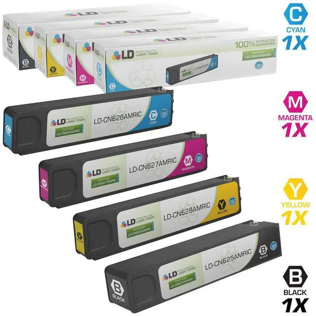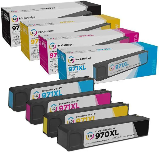 LD Remanufactured Replacements for HP 970XL / 970 / 971XL / 971 4PK HY Ink Cartridges Includes:1 CN625AM Black, 1 CN626AM Cyan, 1 CN627AM Magenta, & 1 CN628AM Yellow for HP OfficeJet Pro Series