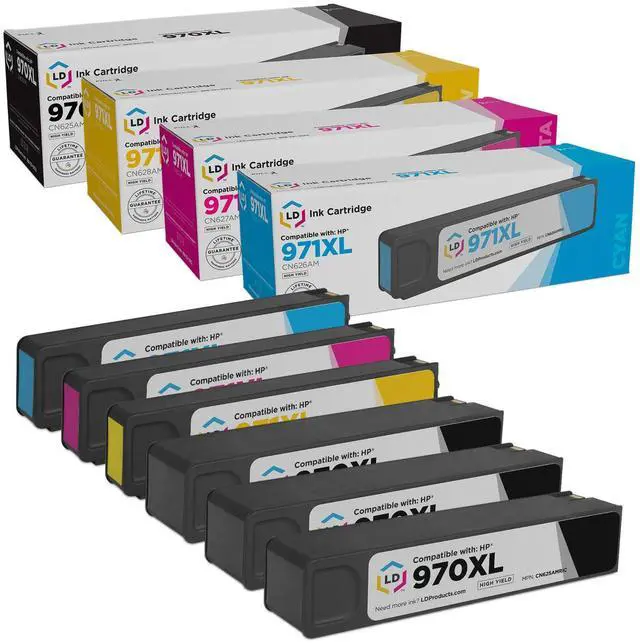 LD Remanufactured Replacements for HP 970XL / 970 / 971XL / 971 6PK HY Ink Cartridges Includes: 3 CN625AM Black, 1 CN626AM Cyan, 1 CN627AM Magenta, & 1 CN628AM Yellow for HP OfficeJet Pro Series