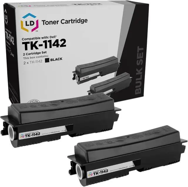 This Item Includes: (2-Pack, Black) Replacement Toner Cartridge Compatible with Kyocera TK-1142. Why pay more for brand name when our Compatible printer supplies deliver excellent quality results for a fraction of the price?. Our cartridges are good for home, office or when you're running a business. Our products are put through a rigorous testing process where they are monitored for quality and reliability. Knowing the ink cartridge that works most efficiently with your printer model is important. Please note, retail packaging may vary and these cartridges will only work with printers purchased within the United States and Canada. The use of compatible cartridges does not void your printer's warranty and our cartridges are not manufactured by Kyocera Mita.