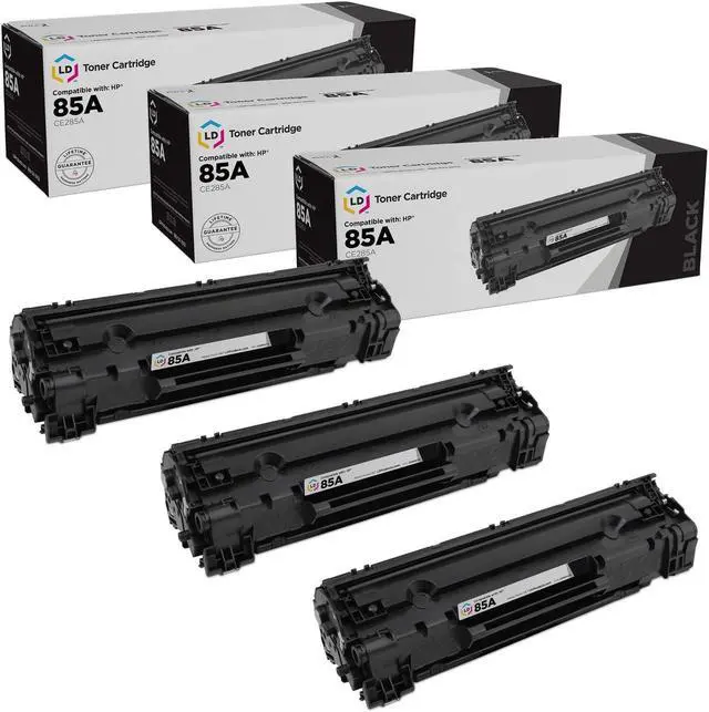 Save even more with our set of 3 compatible laser toner cartridges. This set includes 3 CE285A black laser toner cartridges. Why pay more for brand name Hewlett Packard 85A cartridge? This is not a remanufactured cartridge and it was not manufactured by HP. This set works in the following
