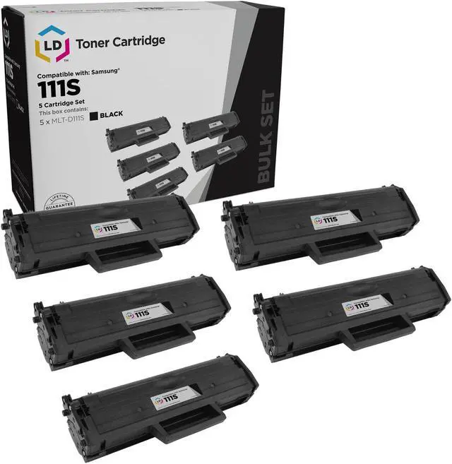 Save even more with our set of 5 compatible toner cartridges. This set includes 5 MLT-D111S Black laser toner cartridges. Why pay more for brand name Samsung MLT-D111S cartridge? This set works in the following