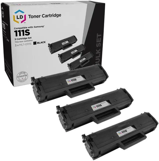 Save even more with our set of 3 compatible toner cartridges. This set includes 3 MLT-D111S Black laser toner cartridges. Why pay more for brand name Samsung MLT-D111S cartridge? This set works in the following