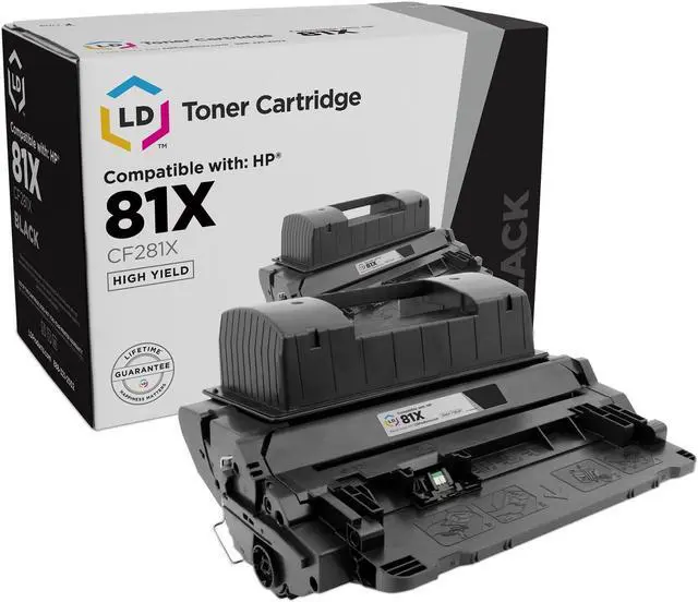 Save even more with our set of 1 HP compatible CF281X hp toner high yield black laser toner cartridges. These LD compatible CF281X (HP 81X hp printer toner ) high yield black laser toner cartridges are professionally manufactured by LD Products. These are not remanufactured cartridges and they were not manufactured by HP. These newly built cartridges from LD Products may contain new and used parts. It is an excellent choice over costly HP CF281X (81X) high yield black laser toner cartridges. Our compatible CF281X high yield black laser toner is built to deliver excellent, dependable results, page after page.