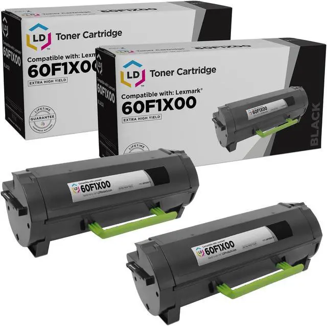 Save even more with our set of 2 compatible laser toner cartridges. This set includes 2 60F1X00 extra high yield black laser toner cartridges. Why pay more for brand name Lexmark 601X cartridge?. This set works in the following