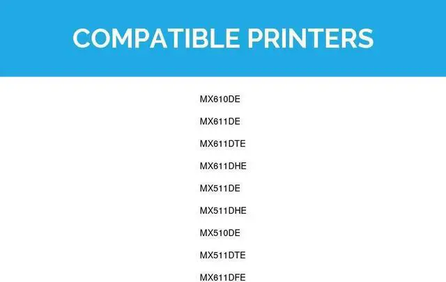 Lexmark MX printers: MX510de, MX511de, MX511dhe, MX511dte, MX610de, MX611de, MX611dhe, and MX611dte. We are the exclusive reseller of LD Products brand of high quality printing supplies.