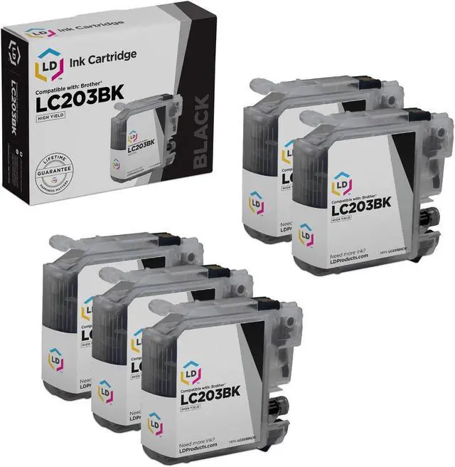 Save even more with our set of 5 compatible high yield ink cartridges. This set includes 5 LC203BK high yield black cartridges. Why pay more for brand name Brother LC203 cartridge? This set works in the following