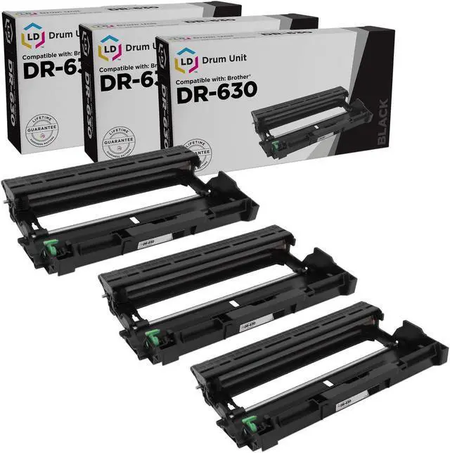 Save even more with our set of 3 compatible cartridges. This set includes 3 DR630 Drum Unit cartridges. Why pay more for brand name Brother DR630 cartridge? This set works in the following Brother DCP, HL, and