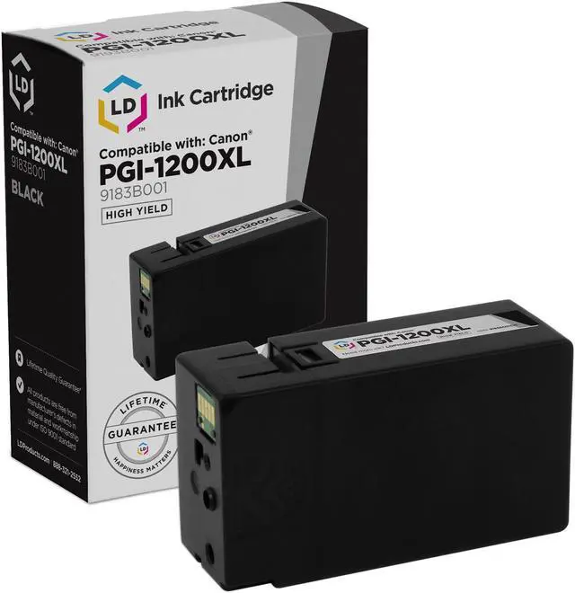 Save and print even more when you shop LD Products! This product includes one ink cartridge replacement compatible with Canon PGI-1200XL 9183B001 High Yield (Black). Compatible with Printers Maxify MB2020, MB2120, MB2320, and MB2720. Why pay more for a brand name when our compatible printer supplies deliver excellent quality results for a fraction of the price? Our printer supplies are good for home, office or when you're running a business. Our products are put through a rigorous testing process where they are monitored for quality and reliability. Please note, retail packaging may vary and will only work with printers purchased within the United States and Canada.