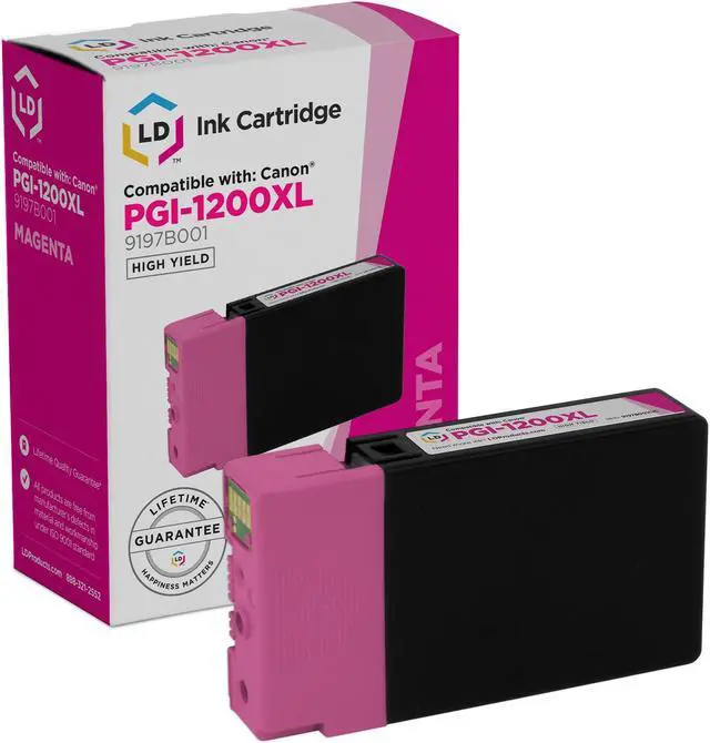 Save even more with our compatible inkjet cartridge. This item includes 1 9197B001 Magenta inkjet cartridge. Why pay more for brand name Canon PGI-1200XL cartridge? This item works in the following