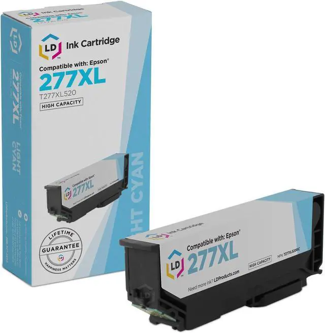 Our remanufactured replacement ink cartridge which is compatible with T277XL520 (277XL) high-capacity light cyan inkjet cartridges are manufactured to deliver optimal performance and high quality printouts at a fraction of the cost of the original Epson T277XL520 inkjet cartridges. You will get high quality print outs of our remanufactured replacement ink cartridge compatible with the T277XL520 (277XL) inkjet cartridges. Why pay more for a T277XL520 brand name ink cartridge? Save Compared to MSRP. Remanufactured using both and non-OEM parts. LD Products Cartridges are manufactured in an internationally certified ISO 9002 factory. LD Products cartridges come with technical support.