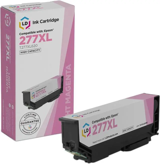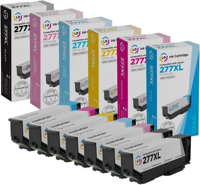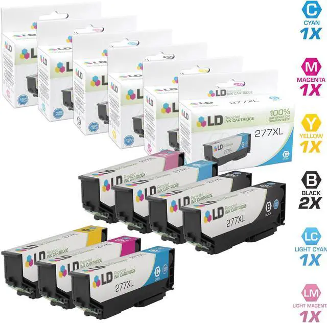 Save and print even more when you shop with LD Products! This offer includes (2) T277XL120 Black, (1) T277XL220 Cyan, (1) T277XL320 Magenta and (1) T277XL420 Yellow, (1) T277XL520 Light Cyan and (1) T277XL620 Light Magenta High Yield ink cartridges; they replace the 277 / T277 Standard Yield ink series. For use in