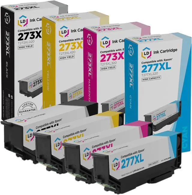 Save and print even more when you shop with LD Products! This offer includes (1) T277XL120 Black, (1) T277XL220 Cyan, (1) T277XL320 Magenta and (1) T277XL420 Yellow High Yield ink cartridges; they replace the 277 / T277 Standard Yield ink series. Why pay more for expensive brand name Epson ink? For use in
