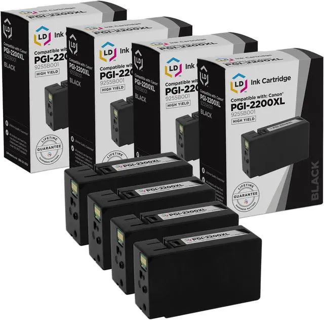 Save even more with our set of 4 compatible inkjet cartridges. This set includes 4 9255B001 Black inkjet cartridges. Why pay more for brand name Canon PGI-2200XL cartridge? This set works in the following