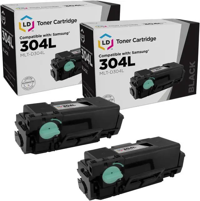 Save even more with our remanufactured laser toner cartridges. This listing contains 2 MLT-D304L High Yield Black laser toner cartridges. Why pay more for brand name Samsung MLT-D304L cartridge when our remanufactured printer supplies deliver excellent quality results for a fraction of the price? Our remanufactured cartridges for Samsung are built to perform. So stock up now and save even more! This set works in the following