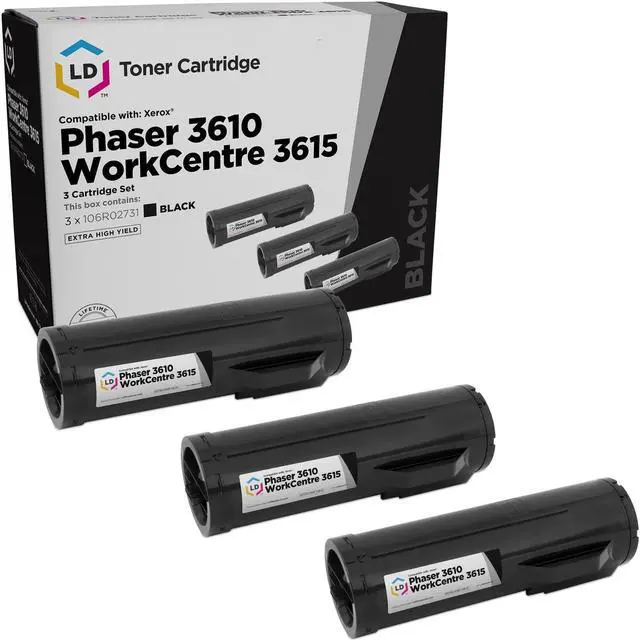 Save even more with our compatible toner cartridges. This listing contains 3 106R02731 extra high yield black laser toner cartridges. Why pay more for brand name Xerox 106R2731 cartridge? This set works in the following Xerox Phaser and