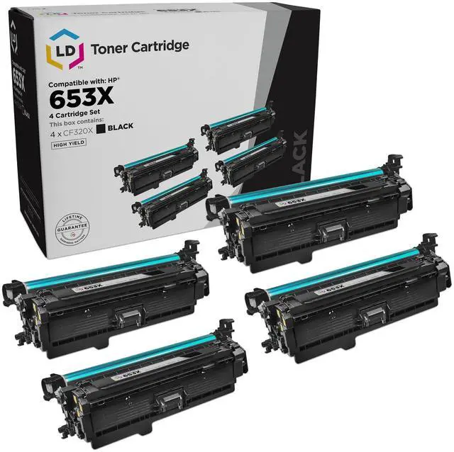 Save even more with our compatible laser toner cartridges. This listing contains 4 CF320XCTA high yield black laser toner cartridges. Why pay more for brand name HP 653X cartridge? This set works in the Hewlett Packard Color LaserJet Enterprise MFP Printers: M680dn, M680f, and M680z. This is not a remanufactured cartridge and it was not manufactured by HP. Please note, this item will only work with printers purchased within the United States and Canada. We are the exclusive reseller of LD Products brand of high quality printing supplies.
