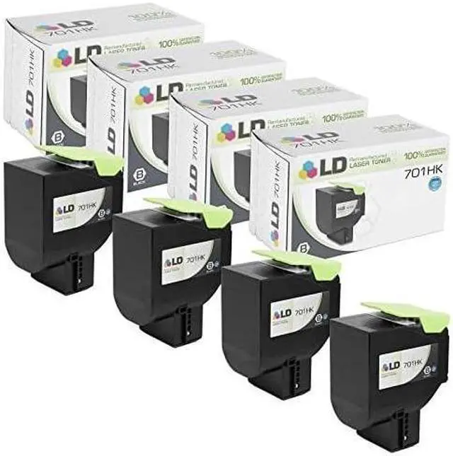 Save even more with our remanufactured laser toner cartridges. This listing contains 4 70C1HK0 Black laser toner cartridges. Why pay more for brand name Lexmark 701HK cartridge when our remanufactured printer supplies deliver excellent quality results for a fraction of the price? Our remanufactured cartridges for Lexmark are built to perform. So stock up now and save even more! This set works in the following