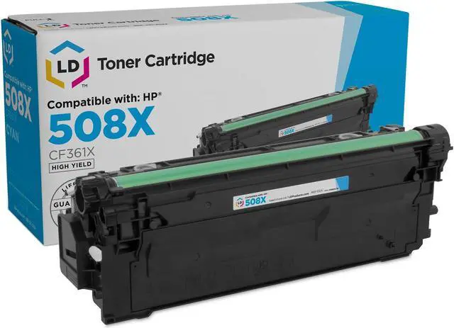 Save even more with our compatible laser toner cartridge. This listing contains 1 CF361X high yield Cyan laser toner cartridge. Why pay more for brand name HP 508X Cartridge when our compatible printer supplies deliver excellent quality for a fraction of the price? Our compatible cartridges for Hewlett Packard are built to perform. So stock up now and save even more! This is not a remanufactured cartridge and it was not manufactured by HP. This item works in the in the following