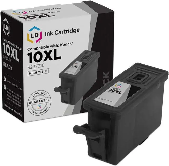 Save and print even more when you shop with LD Products! This offer includes (1) compatible 8237216 / #10XL high yield black ink cartridge. Why pay more for expensive brand name ink? Compatible with ESP 3, ESP 3250, ESP 5, ESP 5210, ESP 5250, ESP 7, ESP 7250, ESP 9, ESP 9250, ESP Office 6150, EasyShare 5100, EasyShare 5300, EasyShare 5500, Hero 6.1, Hero 7.1 and Hero 9.1 printers. Please note, retail packaging may vary, and these cartridges will only work with printers purchased within the United States and Canada.