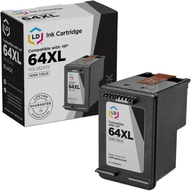 Save and print even more when you shop with LD Products! This offer includes (1) N9J92AN / HP 64XL high yield black ink cartridge. Why pay twice as much for expensive brand name HP ink when our remanufactured printer supplies are backed by a 100% Satisfaction and LIFETIME Guarantee? This ink cartridge is compatible with HP ENVY 6255, ENVY 7155 and ENVY 7855 printers. Please note, retail packaging may vary and this cartridge will only work with printers purchased within the United States and Canada. The use of remanufactured replacement printing supplies does not void your printer warranty. HP does not remanufacture our remanufactured ink cartridges. We are the exclusive reseller of LD Products brand of high quality printing supplies on Newegg.