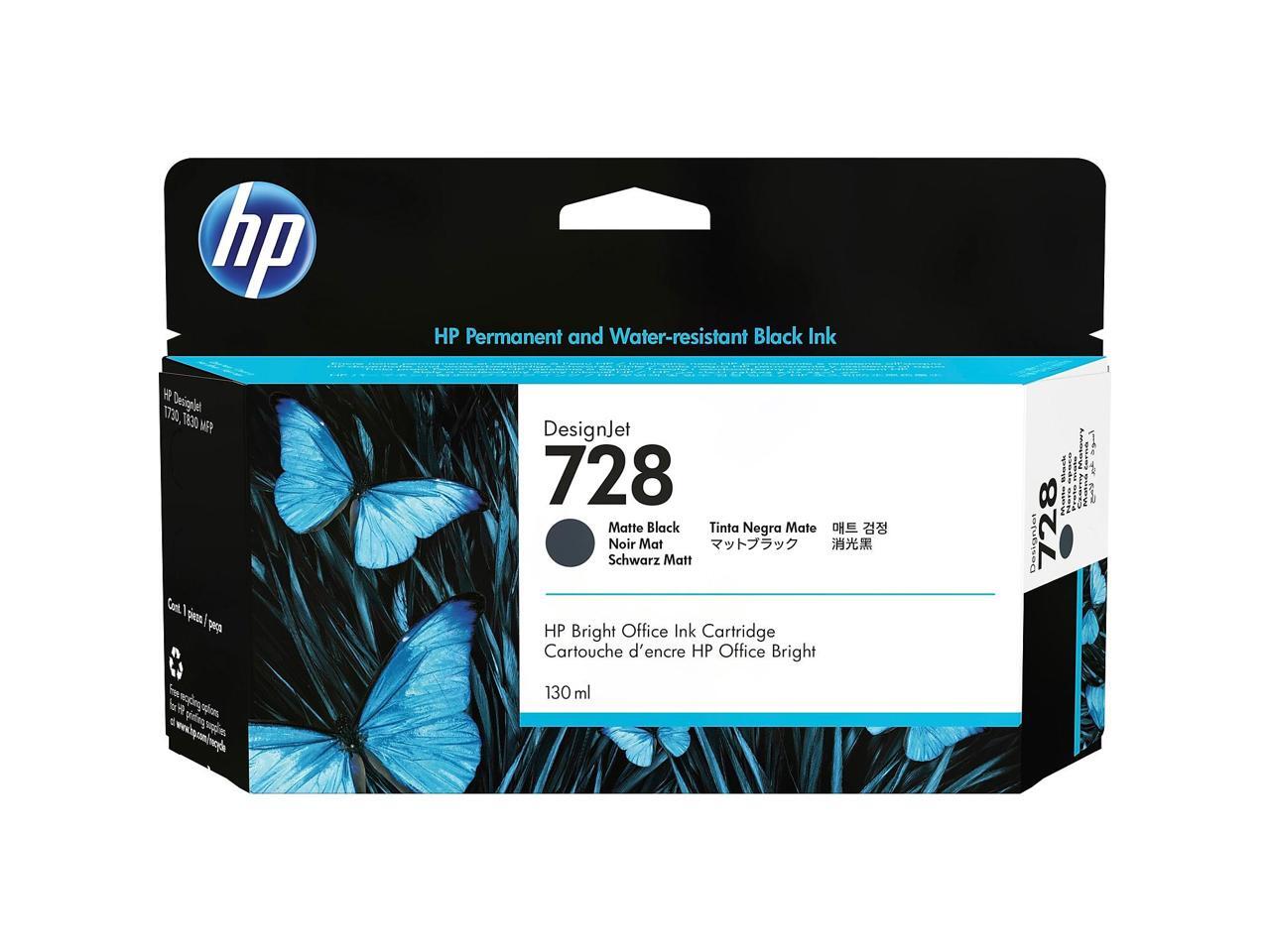 HP 728 130-ml Matte Black DesignJet Ink Cartridge, 3WX25A