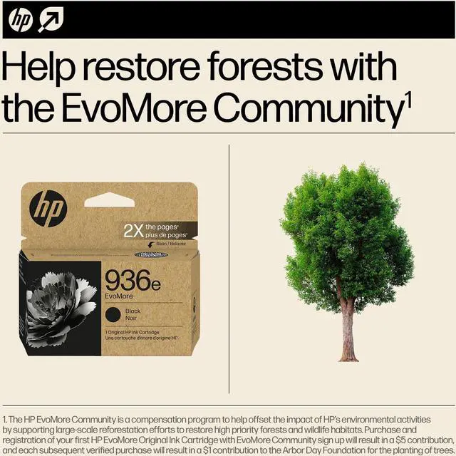 Choose Original HP Supplies, designed for reliability and consistency. BenefitsGet up to 2x the pages with Original HP XL inks vs. standard cartridges. Fits like the standard cartridgeFeaturesLower carbon footprint. 2x the pages. Lower carbon footprint compared to standard cartridges by getting twice the number of pages. Three simple and easy ways to recycleChoose one of three easy ways to recycle your used cartridges through HP Planet Partners. Let's help restore our forests togetherJoin the EvoMore Community to help restore forests by planting trees.