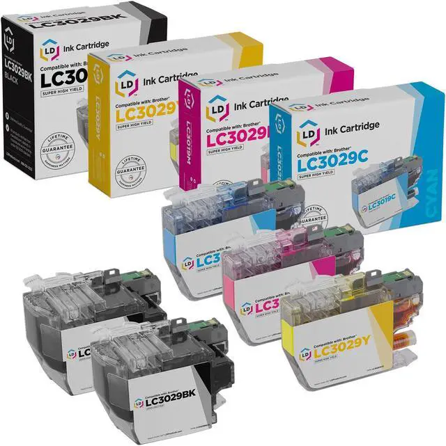 Save and print even more when you shop with LD Products! This listing includes (2) LC3029BK black, (1) LC3029C cyan, (1) LC3029M magenta and (1) LC3029Y yellow ink cartridges; they replace the LC3029 super high yield ink series. Why pay more for brand name Brother ink? This set is compatible with Brother MFC-J5830DW, MFC-J5830DWXL, MFC-J5930DW, MFC-J6535DW, MFC-J6535DWXL and MFC-J6935DW printers. Please note, retail packaging may vary and these cartridges will only work with printers purchased within the United States and Canada. The use of compatible printing supplies does not void your printer warranty.