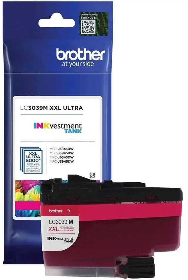 Become a part of the high-quality printing experience with the LC3039 Ultra High Yield INKvestment Tank Ink Cartridge in vibrant magenta. This genuine Brother product is designed to deliver consistent, superior results with an impressive yield of up to 5000 pages. Crafted for efficiency and durability, this high-yield ink cartridge is the perfect companion for your Brother MFC-J5945DW, MFC-J6545DW, or MFC-J6945DW printer. Its compatibility with these models ensures a seamless printing experience, enhancing the overall performance of your printer. The LC3039 Ultra High Yield INKvestment Tank Ink Cartridge is not just about quantity, but also quality.