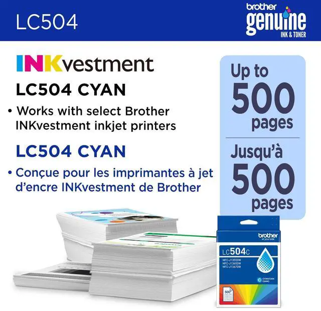 BROTHER GENUINE LC504C STANDARD YIELD CYAN INK CARTRIDGE